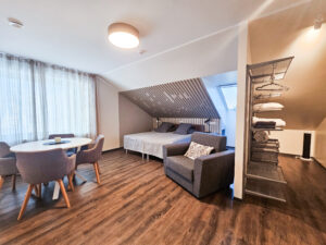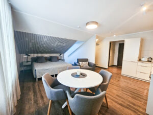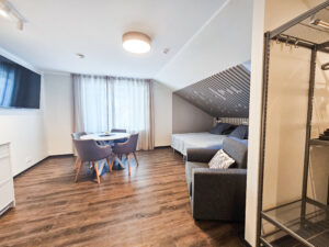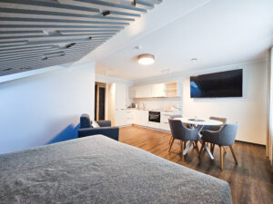 Tuba 5 Sviidis on 2 üheinimese voodit, mis on lükatud üheks kaheinimese voodiks (180x200cm). Toas on eraldi WC, mullivann, köök, nõudepesumasin, külmkapp, tee ja kohvi tegemise võimalus.